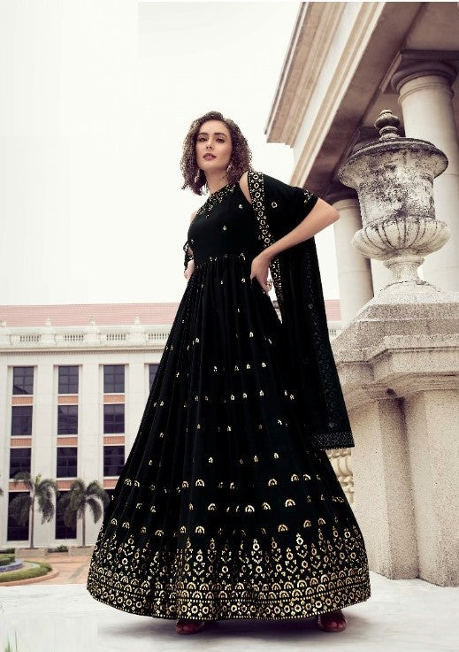Black Wedding Wear Women's Gown With Stylish Dupatta