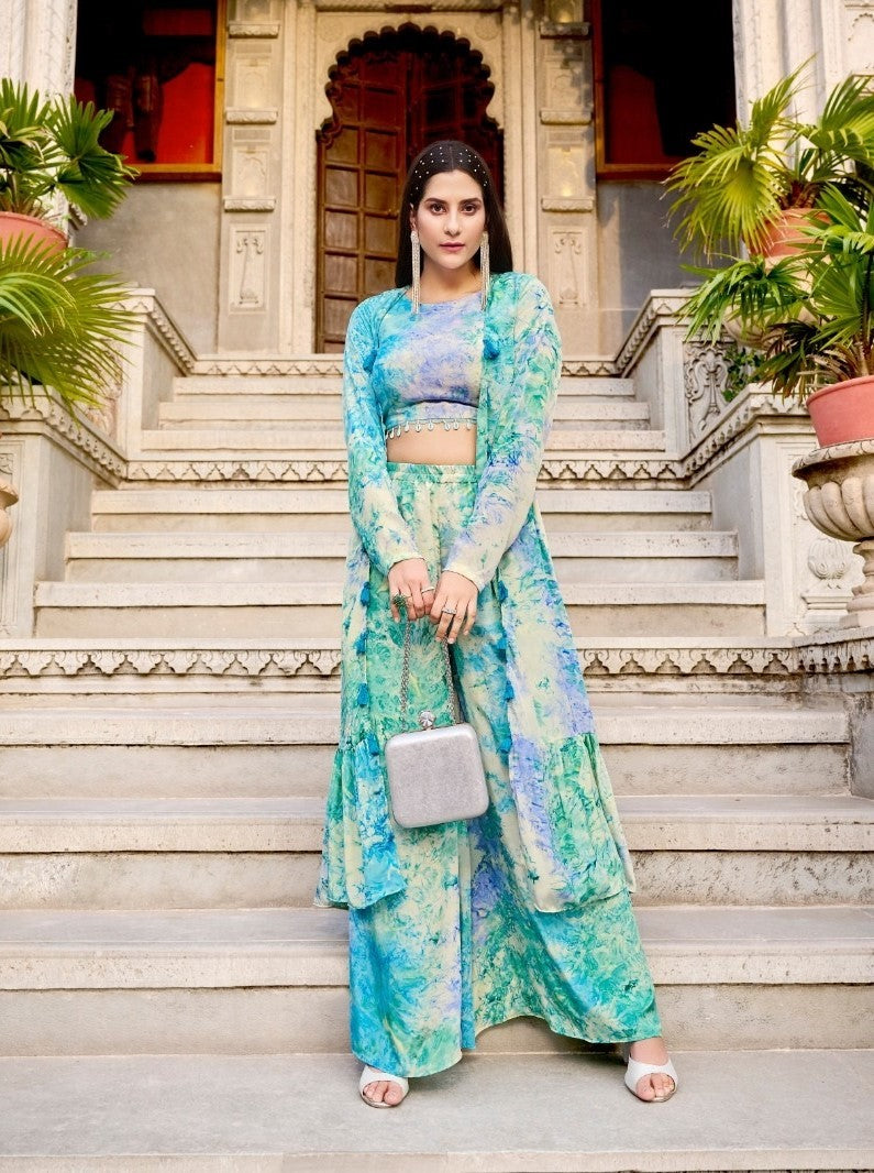 Dark Aqua Tie & Dye Indo Western Suit For Women