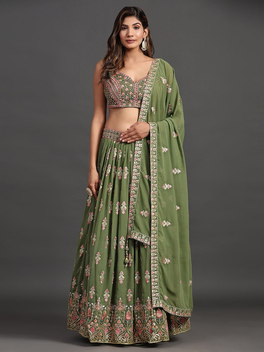 Green Georgette Party Look Elegant Lehenga Choli