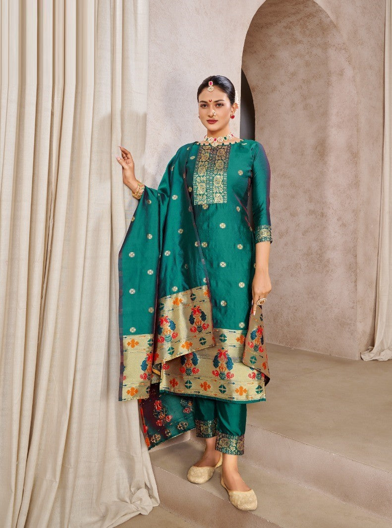 Pine Green Pure Tapeta Silk Designer Dress Material