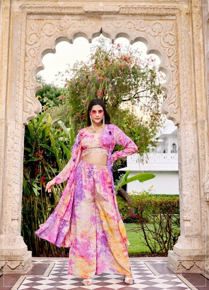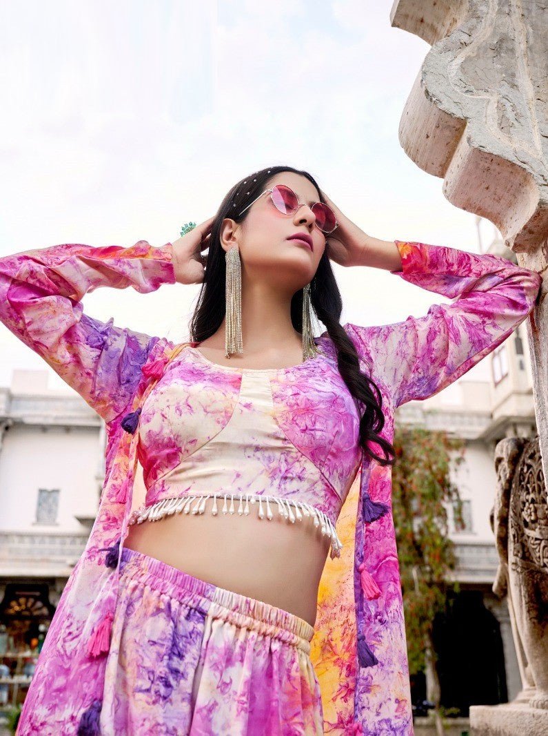 Royal Fuchsia Tie & Dye Indo Western Suit For Women