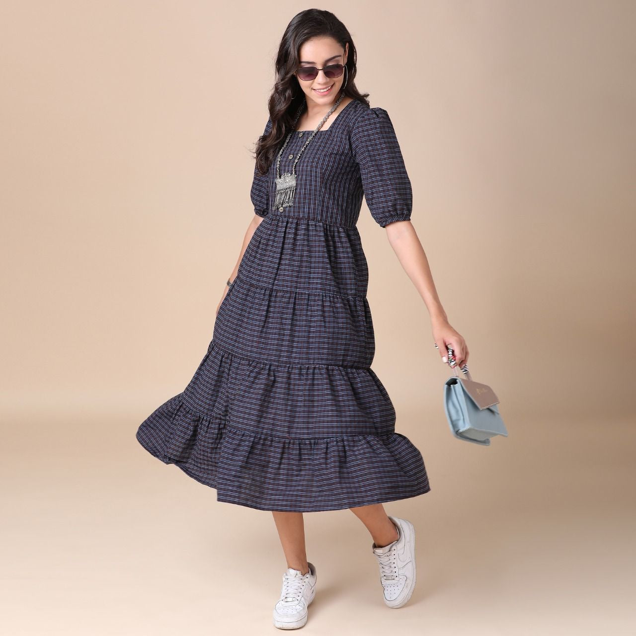 Women's Square Neck Cotton Knee Length Fit And Flare Dress