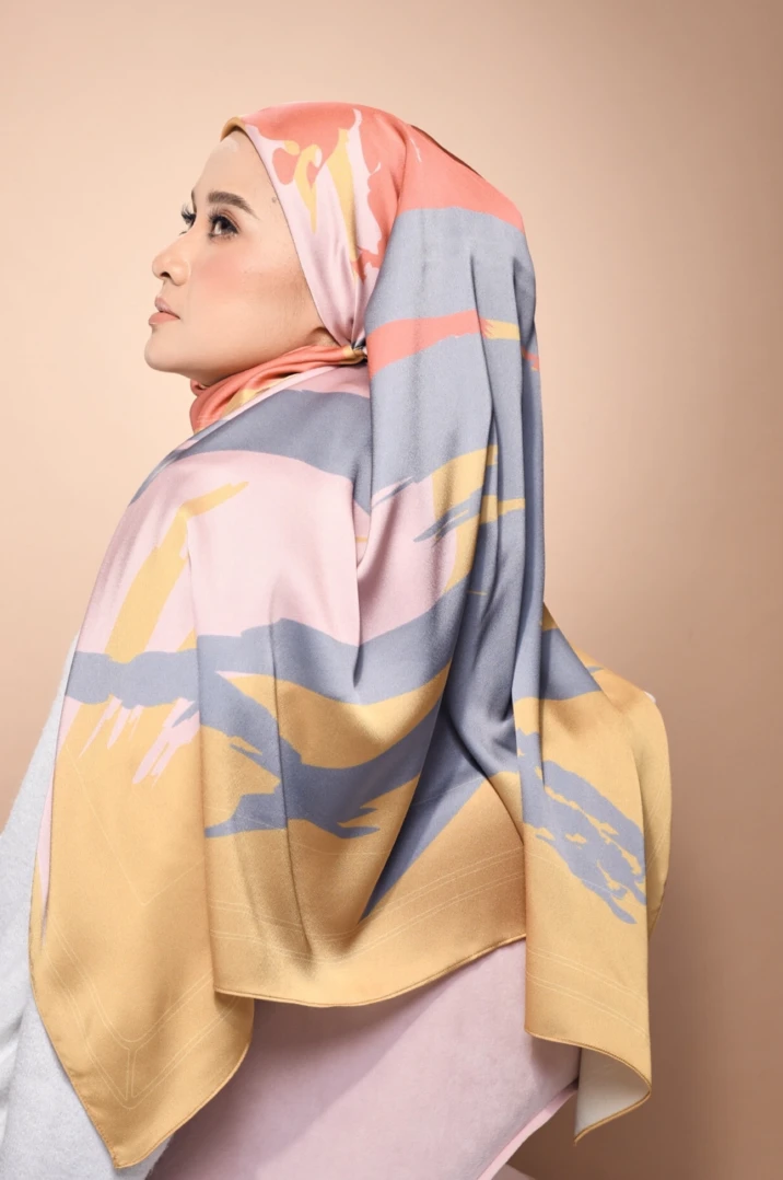 Yellow And Grey Smoothy Silk Square Printed Scarf