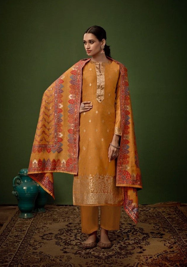 Yellow Festive Collection Of Jacquard Silk Dress Material